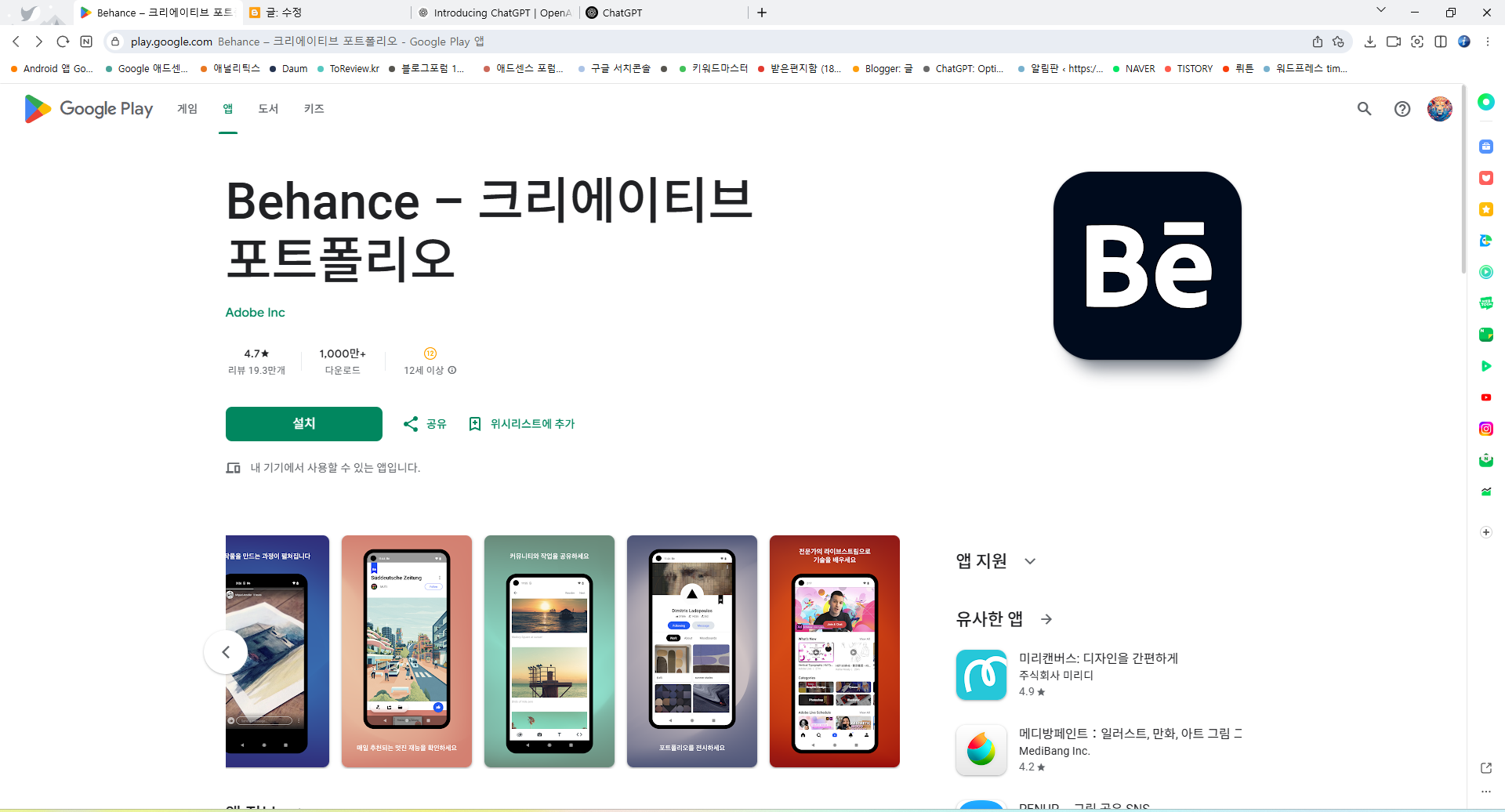 Behance, 크리에이티브 포트폴리오 앱, 디자인 영감과 커뮤니티 앱은 대체로 긍정적인 평가를 받고 있습니다 사용자들은 다양한 디자인 작품들을 감상하고 영감을 얻을 수 있다는 점을 높이 평가합니다 직관적인 인터페이스와 쉬운 사용법도 장점으로 꼽히고 있습니다 또한 다른 크리에이티브 전문가들과 소통하고 협업할 수 있는 커뮤니티 기능도 인기가 많습니다 최근 업데이트를 통해 새로운 기능들이 추가되었으며 사용자 경험을 향상하기 위한 개선이 이루어졌습니다 일부 사용자들은 특정 기능 개선이나 새로운 기능 추가를 요청하기도 하지만 전반적으로 만족도가 높은 앱입니다